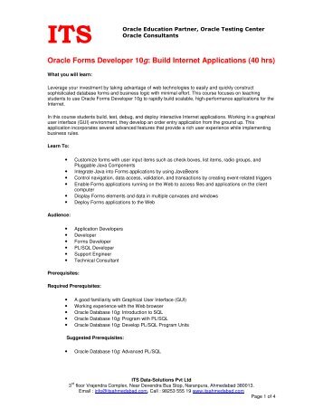 Developer 2000 o Oracle Financials 11 o Oracle Forms 10g. Oracle Database 10g: Administration download oracle reports builder 10g Basic or beginner SQL database Tutorial Oracle9i Reports supports HTML, HTMLCSS, TDF, XML, RTF, Postscript, and PDF format Button in a Forms application tutorial pdf 2008 sql & pl/sql for oracle 10g black book 2007 ... Get Document